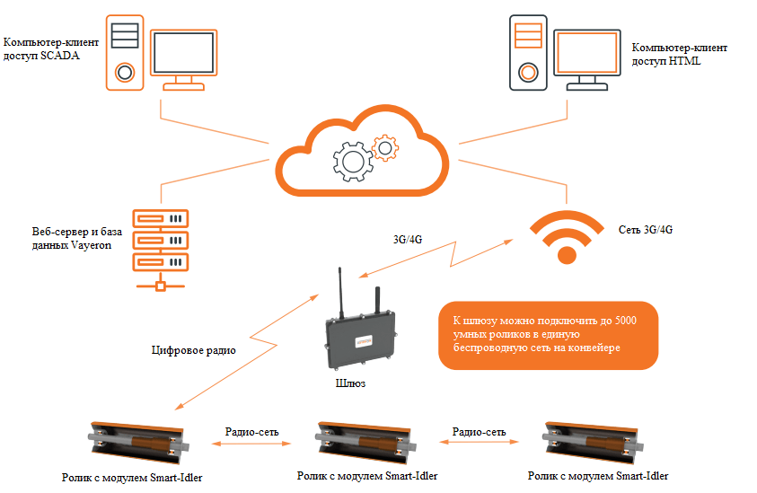 - Полная интеграция в конвейер, требуется только один шлюз на 5000 «Умных роликов»